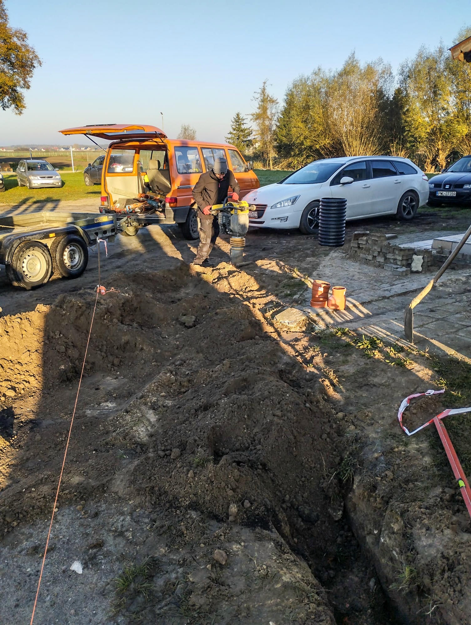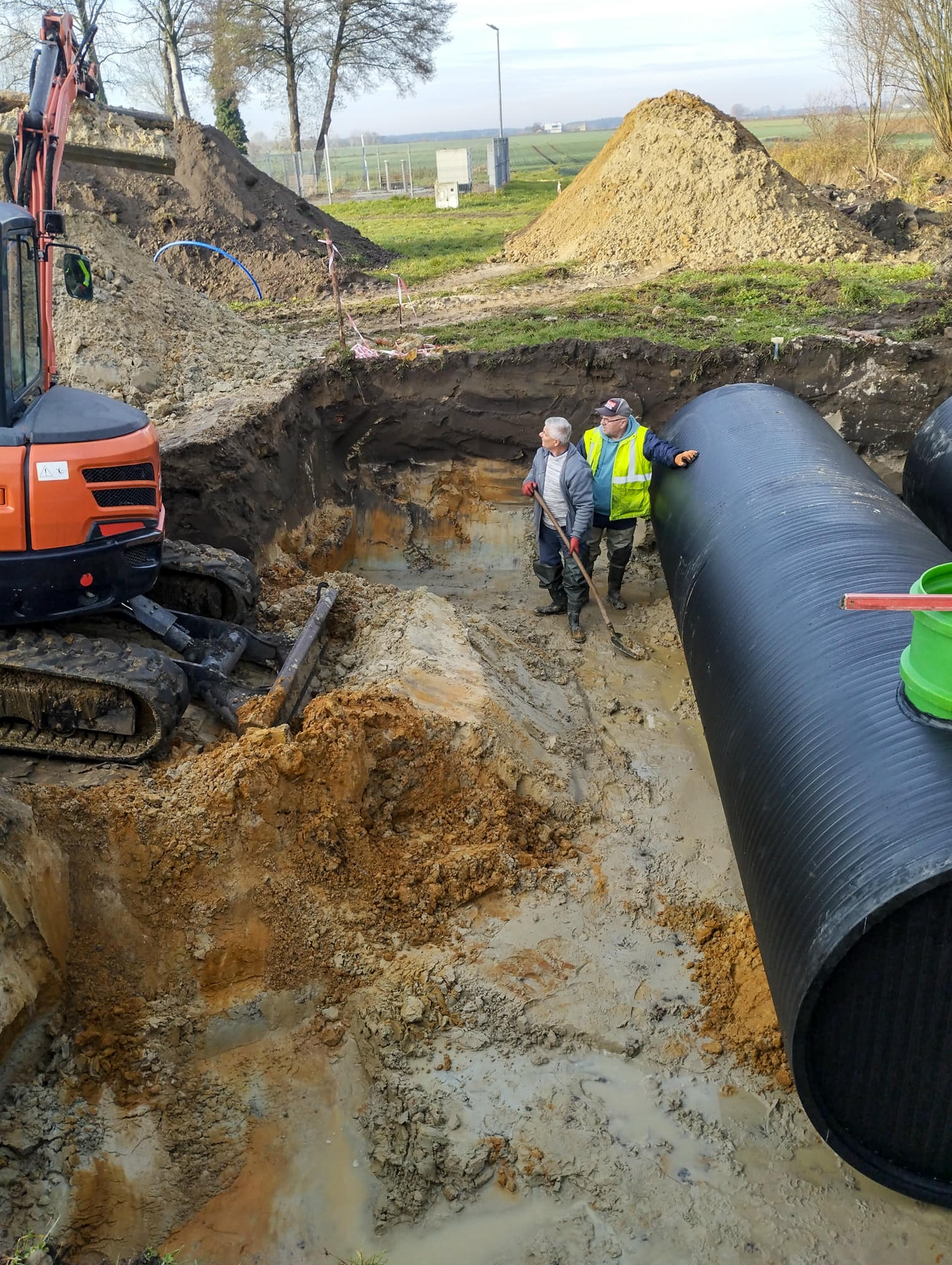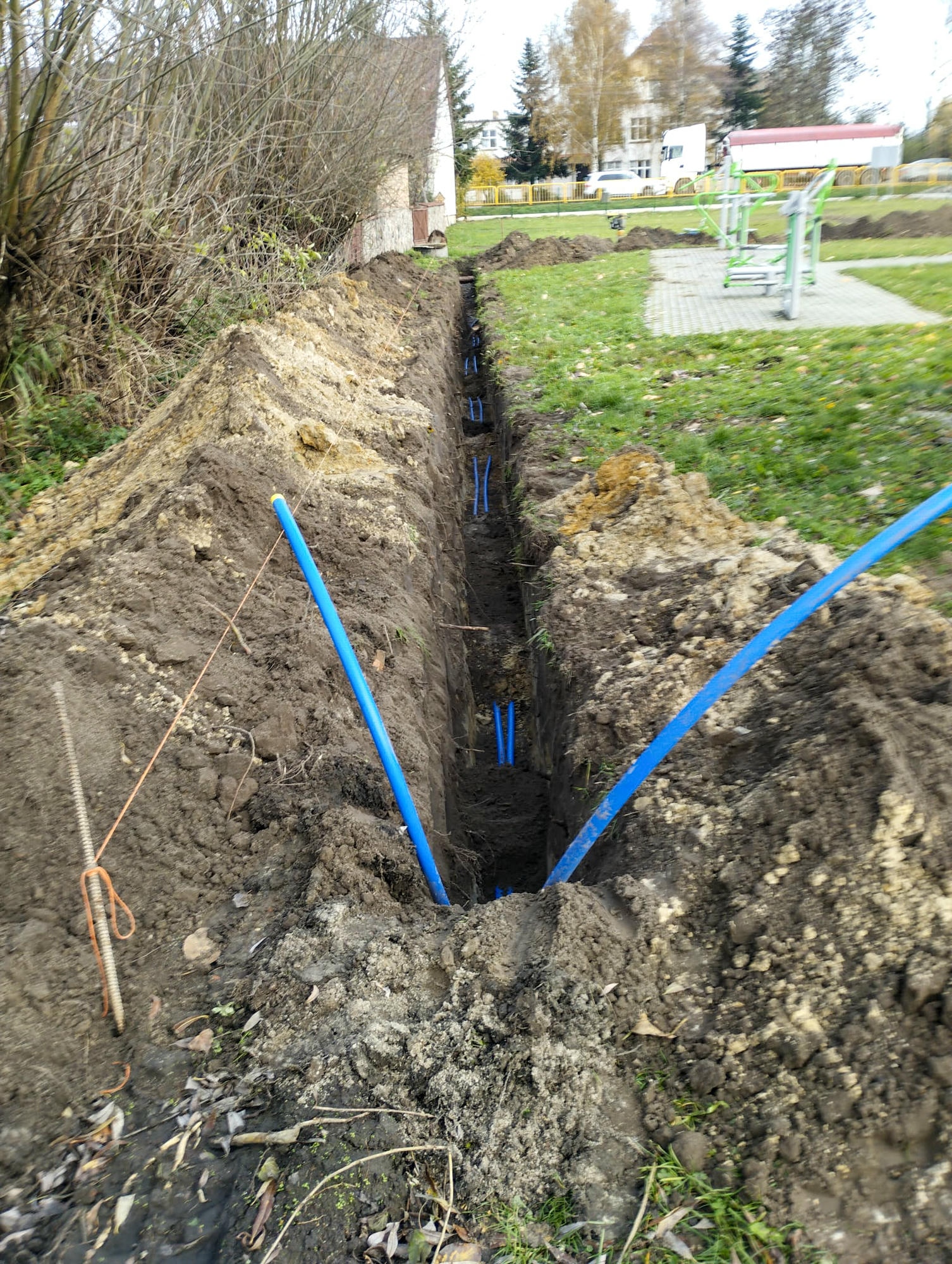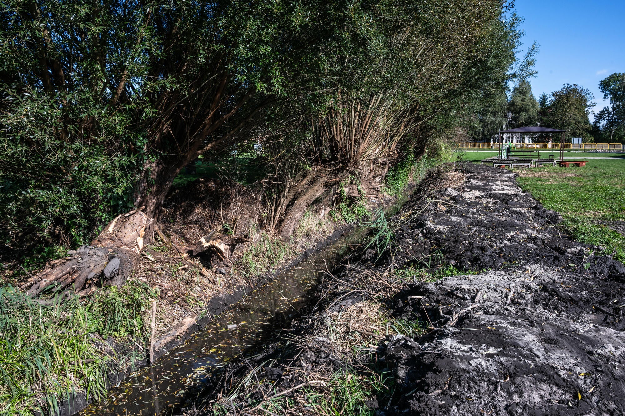 W ramach odrębnego zadania wyczyszczony został pobliski przepust pod drogą wojewódzką oraz pogłębiono rów, którym odprowadzane będą wody opadowe z nowo powstającej hali sportowej przy szkole podstawowej.
