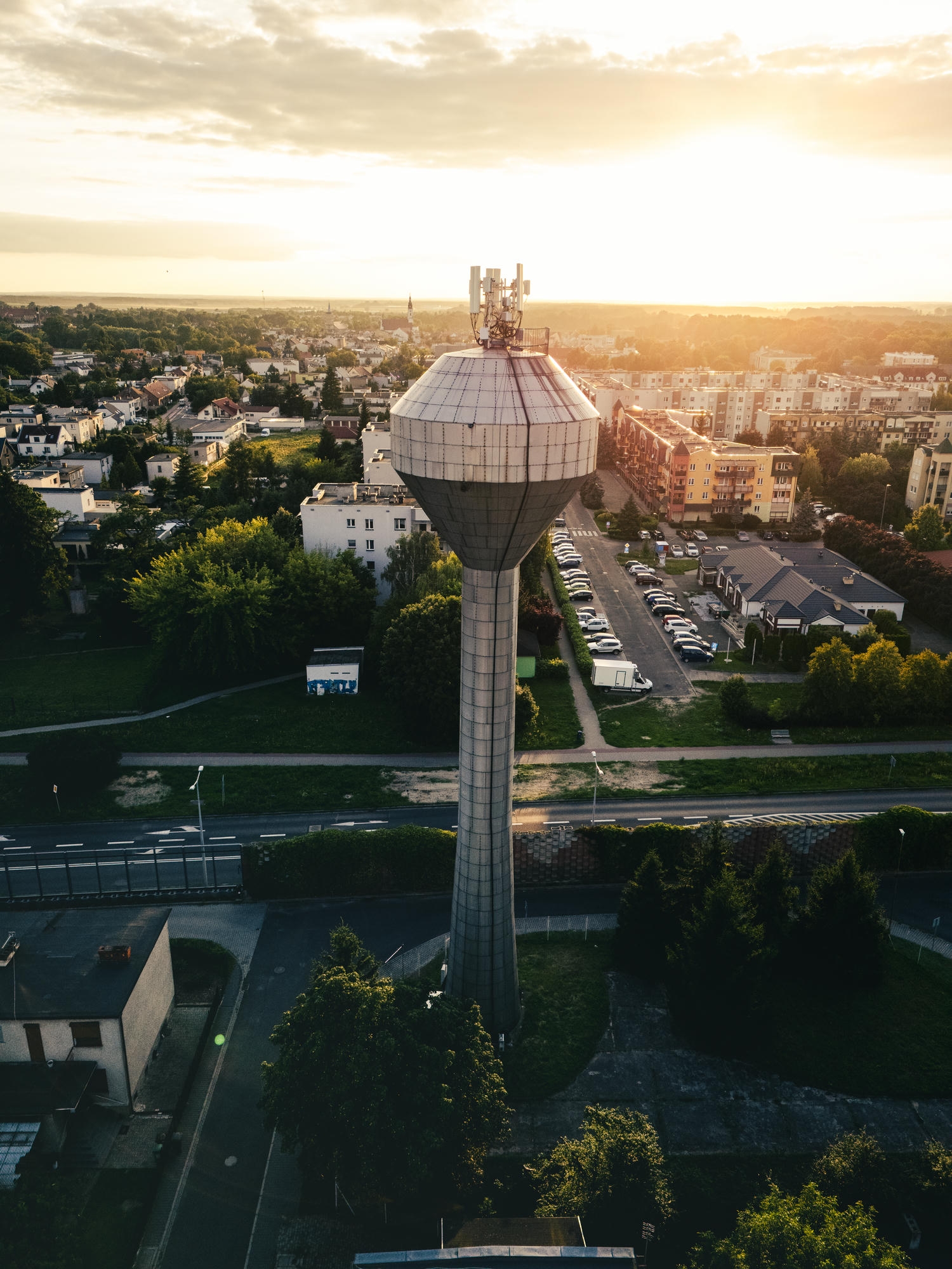 Oddana do użytkowania w 1992 roku, wybudowana przez Węgrów wieża ciśnień miała 40 metrów wysokości oraz zbiornik o pojemności 500 m³ posadowiony na części nośnej, która mogła pomieścić 200 m³ wody. W przeszłości jej zadaniem było stabilizowanie ciśnienia w sieci wodociągowej, szczególnie na potrzeby spółdzielni „Zjednoczenie”. Obiekt funkcjonował do 2021 roku, kiedy został wyłączony z eksploatacji.